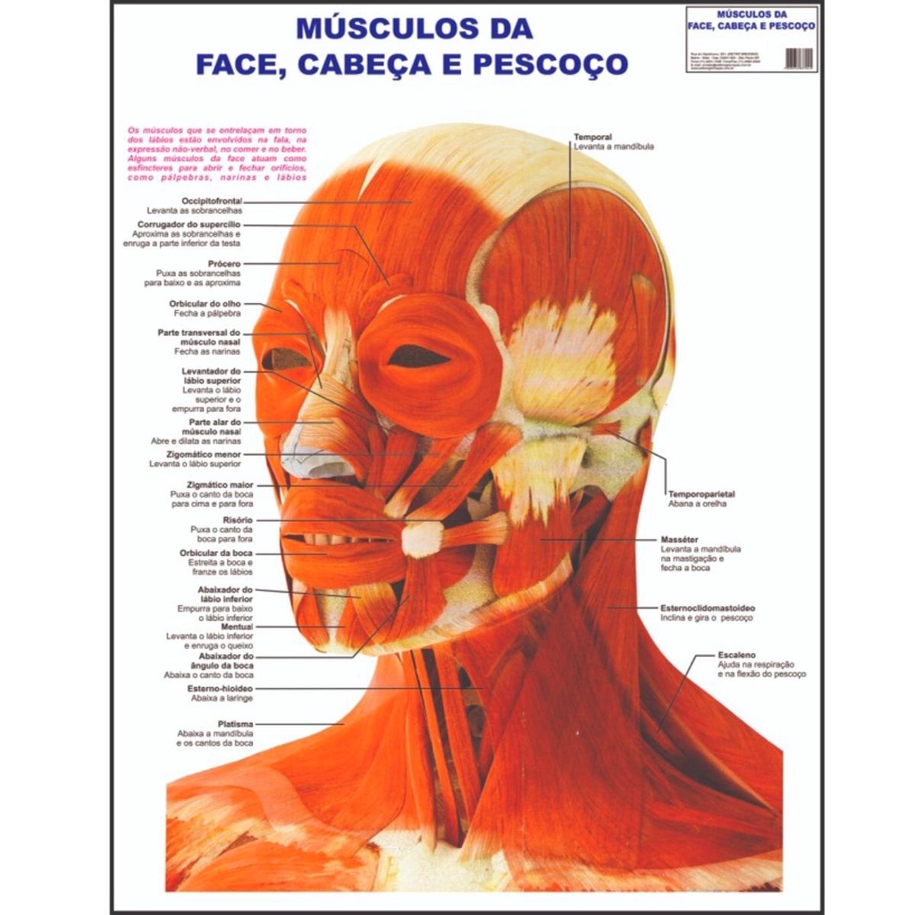 Músculos da Face Cabeça Pescoço Poster Mapa Sistema Corpo Humano Medicina