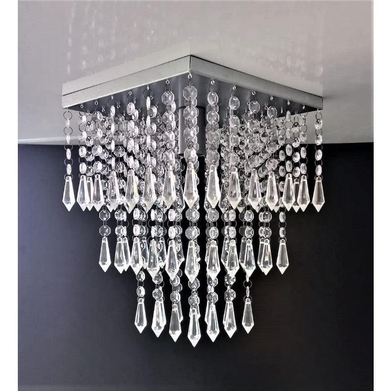 Lustre Luminária Plafon Prata Acrílico 40x40 cm Sala de Jantar Quarto Cozinha Corredor Grande