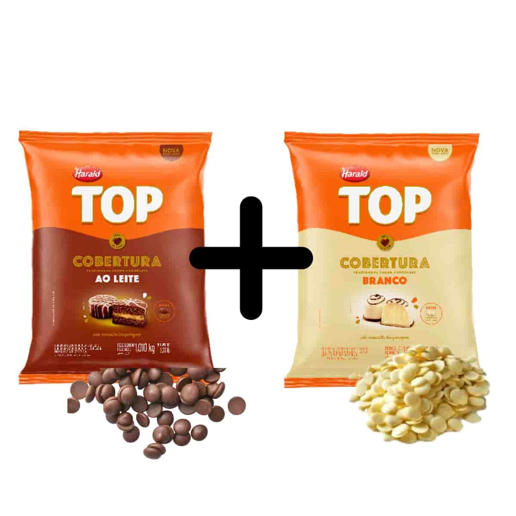 Kit Chocolate Gotas Cobertura Top 1kg Ao Leite e Branco Harald