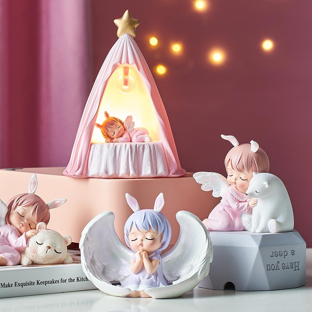 Nodic Anjo Bonito Figurinhas Bebê Jardim De Fadas Miniaturas Enfeites De Resina Decorações De Ano Novo 2021 Sala De Estar Decoração