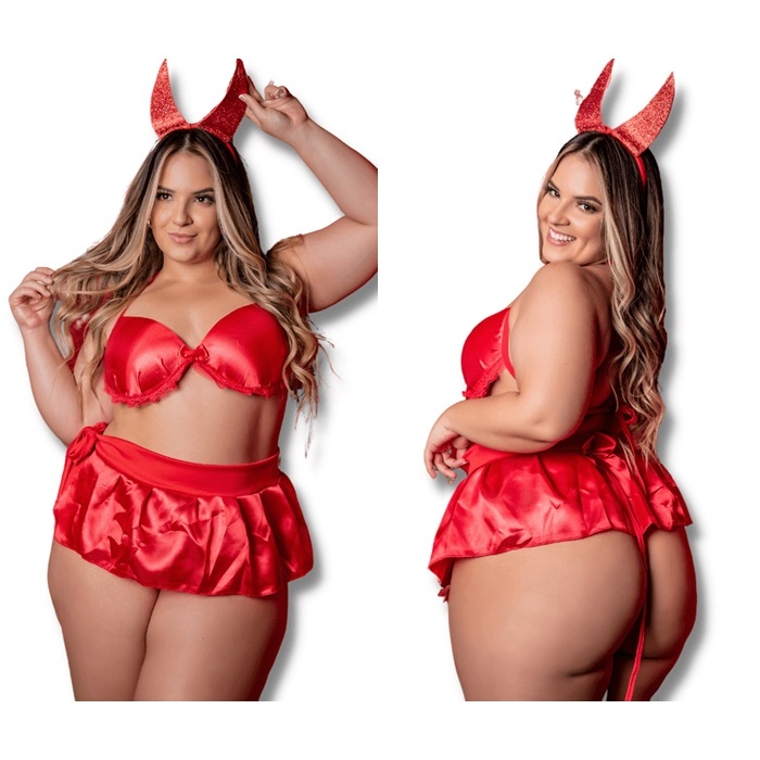 Fantasia Plus Size lingerie com bojo / conjunto feminino / Fantasia Erotica/ Conjunto Fantasia Plus