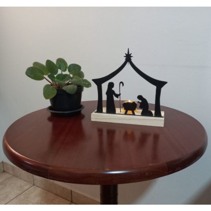 Presépio Natalino 15cm Sagrada Família Feito á mão em Resina Menino Jesus na Manjedoura Natal