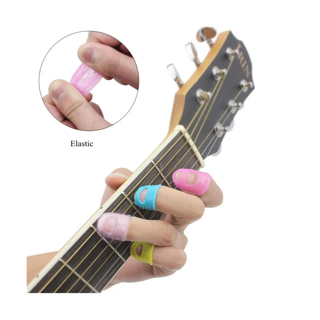 Kit com 5 Protetores de Dedo Silicone para Tocar Violão Guitarra Ukulele Baixo Dedeira
