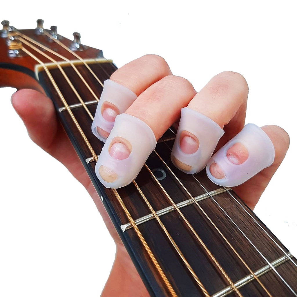 Kit com 4 Protetores de dedos para Tocar Violão Guitarra Ukulele Baixo Dedal Tamanho Grande de Silicone Transparente