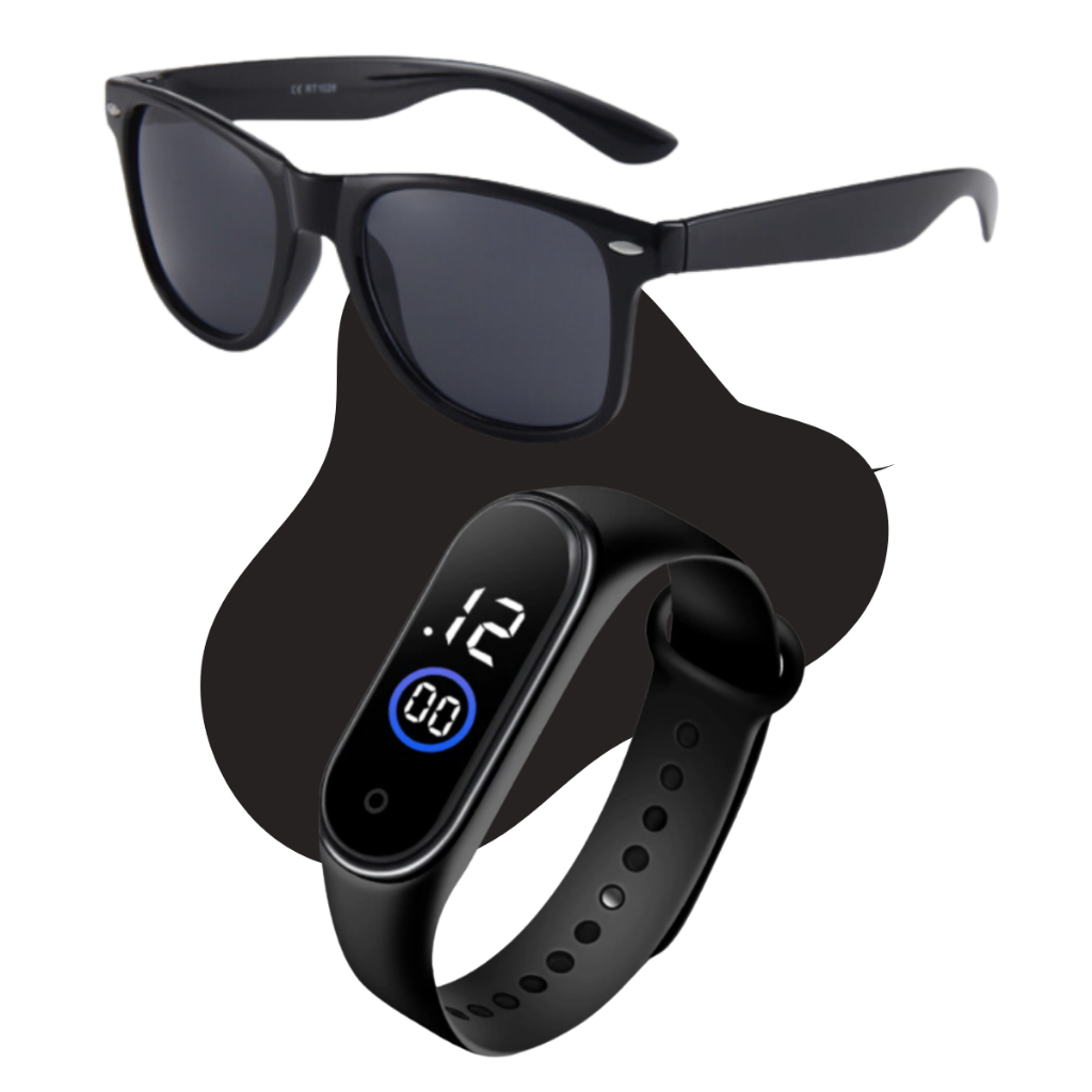 Relógio Led + Óculos de Sol Infantil Varias Cores Infantil Criança Praia Menino Kit