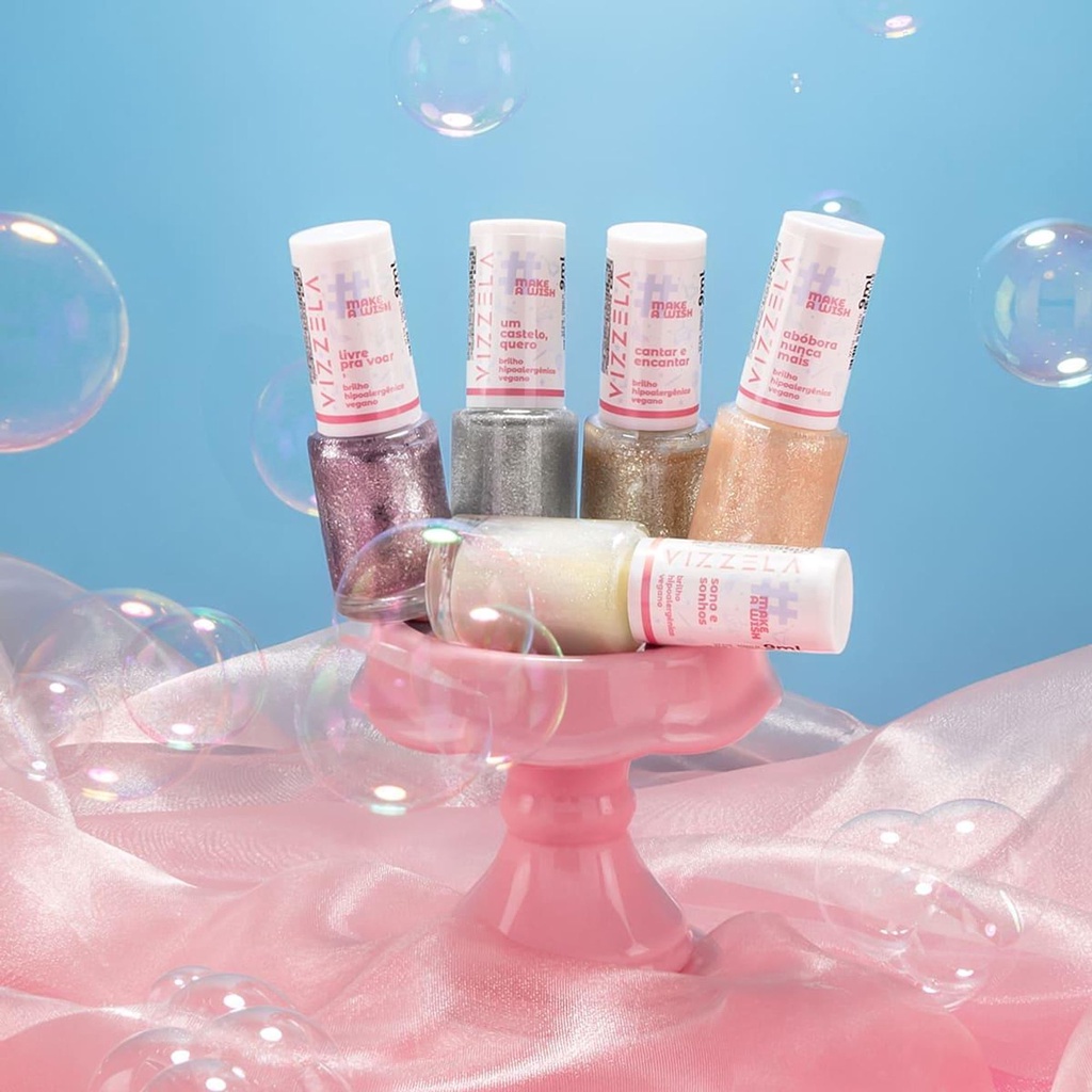 Esmalte para Unhas Vizzela 9ml Coleção Make a Wish Vegano HIpoalergênico Secagem Rápida Brilho Glitter Cintilante Prata Lilás Laranja Branco Bronze