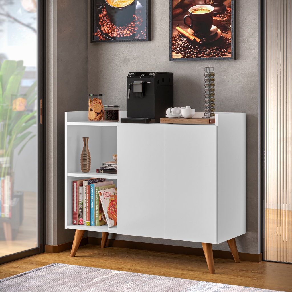 Buffet Aparador Alpha 2 Portas e Prateleiras Com Pés de Madeira Maciça Combinações de Cores