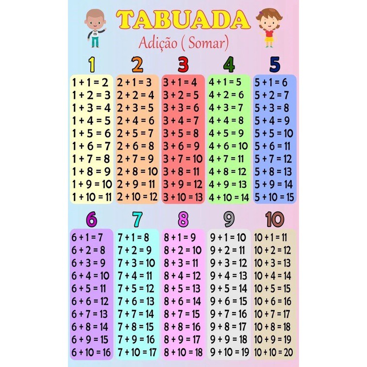 Banner Didático Matemática Tabuada De Adição Somar - Sil1063
