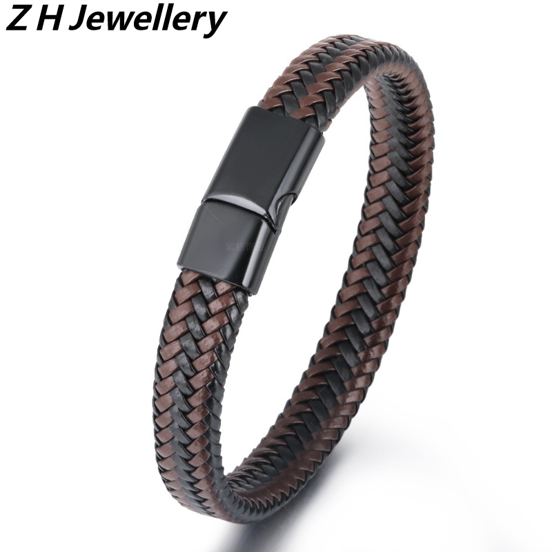 [Z H Bijuteria] Hip Hop Rock Retro Moda Masculina Pulseira De Couro De Aço Inoxidável Festa Joalheria Acessórios