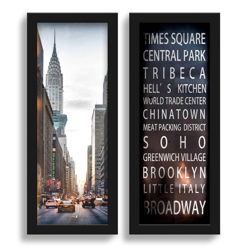 KIT 2 Quadro Lavabo New York Times Square USA Brooklyn Broadway Monumentos Preto Branco Tabaco