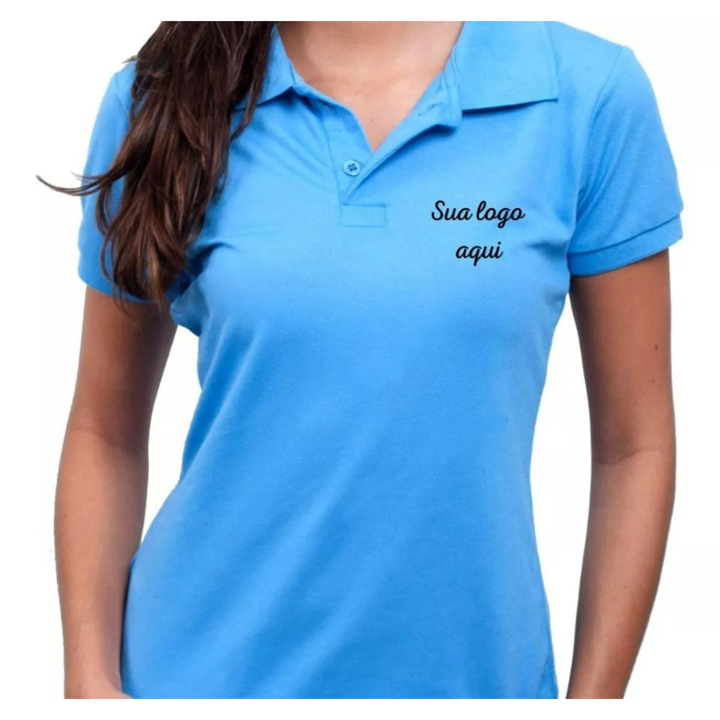Camisa Polo Feminina com Logo Estampado no Peito Uniforme Profissional