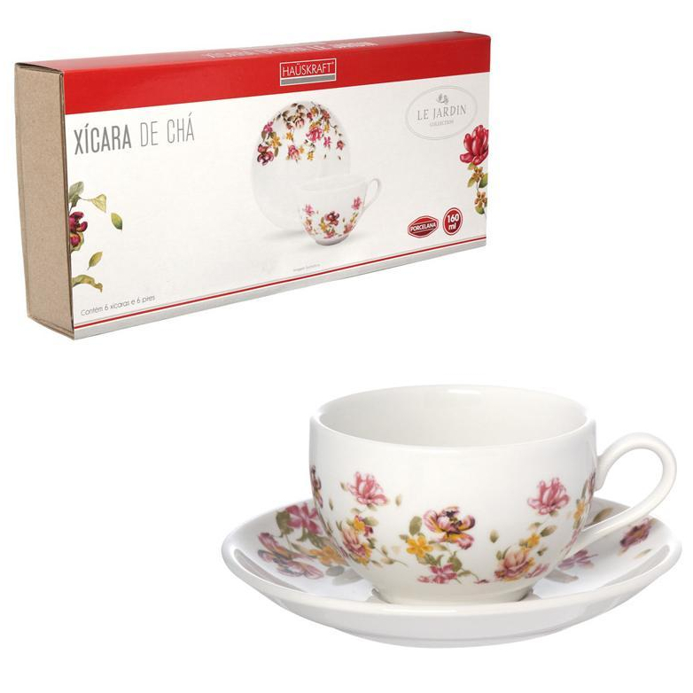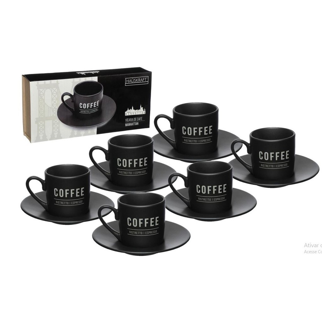 JOGO DE 12 PEÇAS 6 XÍCARAS 6 PIRES PARA CAFÉ E CHÁ 160ML PORCELANA