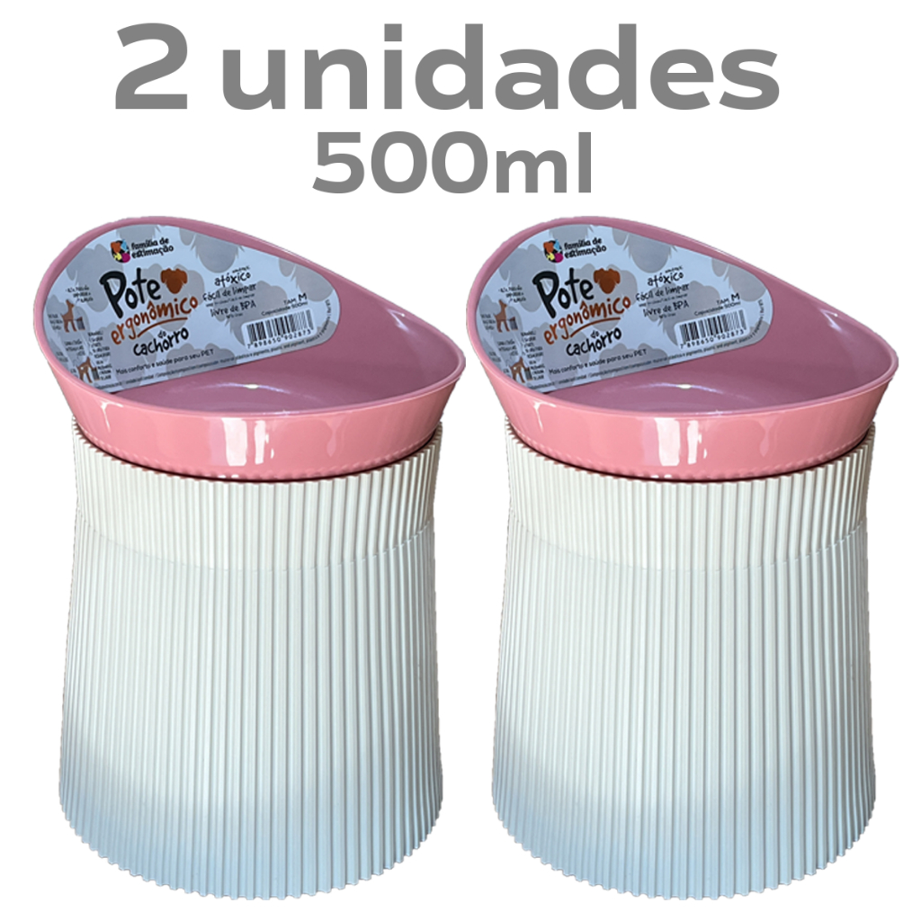 2 Comedouro Elevado Alto Postura Pet - M 500ml Cachorro Gato - Família de Estimação