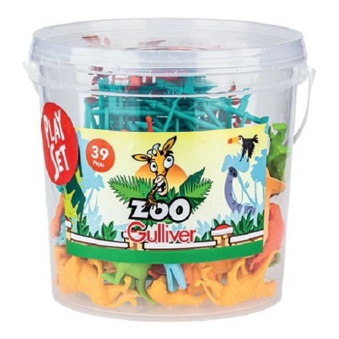 Balde Zoológico 39 Animais Miniaturas Gulliver c/ Cercados!