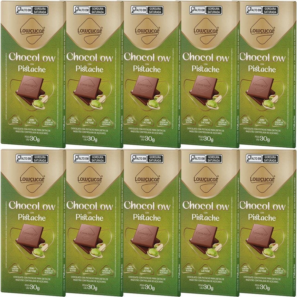 Kit 10 Unid. Chocolate Chocolow com Pistache Zero Lactose 30G