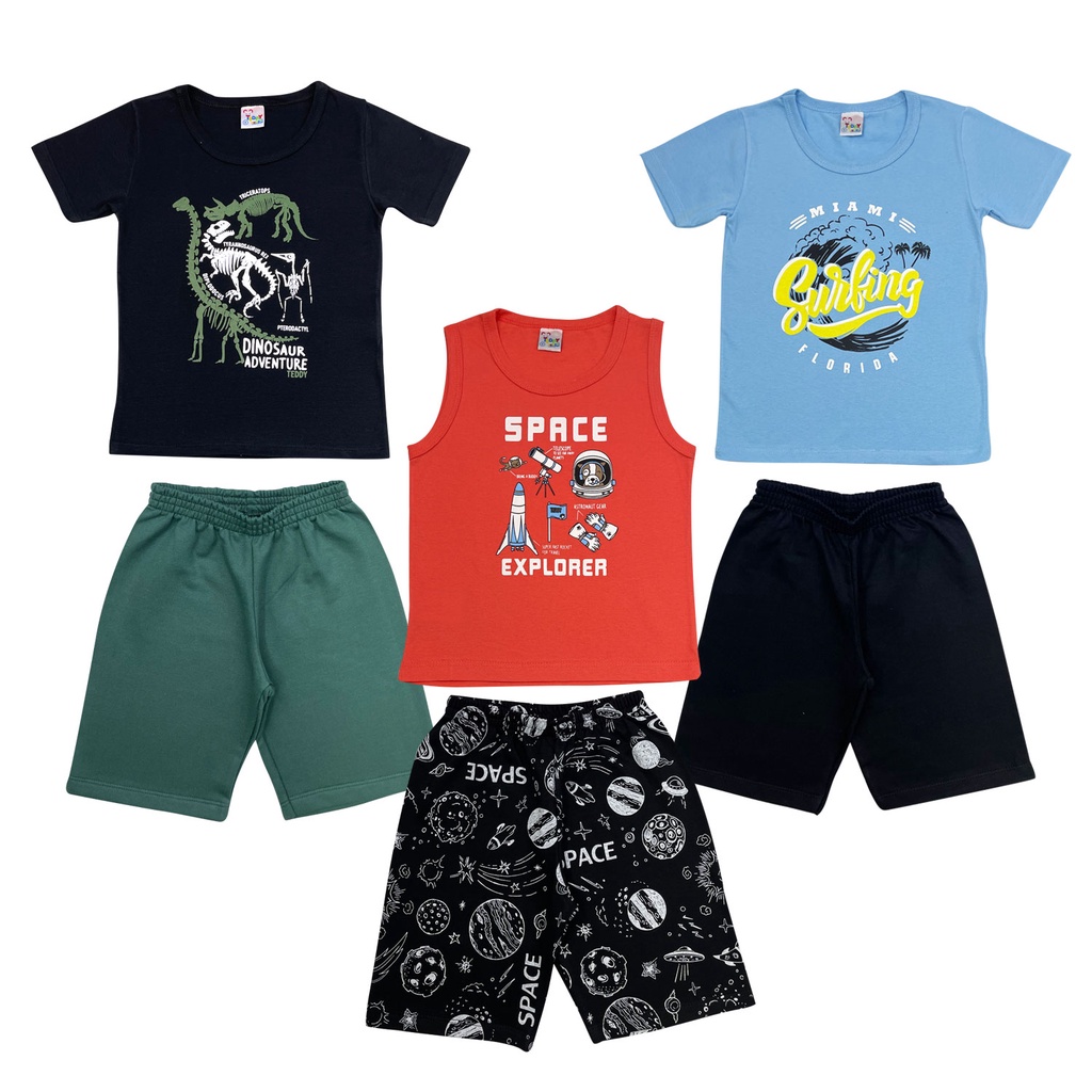 Kit Sortido 6 Peças de Roupas Infantil Menino 3 Camisetas + 3 Bermudas - Promoção - Kit com 3 Conjuntos de Roupa Infantil Menino Verão Menino Bebe Barato