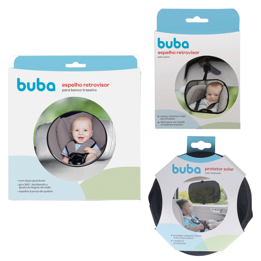 kit Completo Espelho Retrovisor + Espelho Para Banco Traseiro + Kit 2 Protetor Solar Carro Infantil Para Carro Com Ventosa Protege Sol Buba bebe proteção