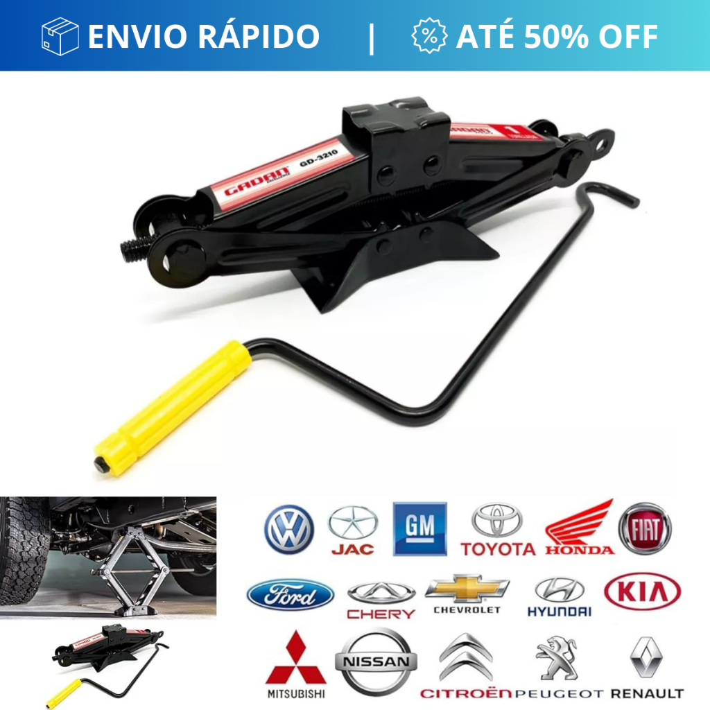 Macaco Jacaré Sanfona Para Carros Passeio Automóveis 1T 1000 Kg Universal Elevação