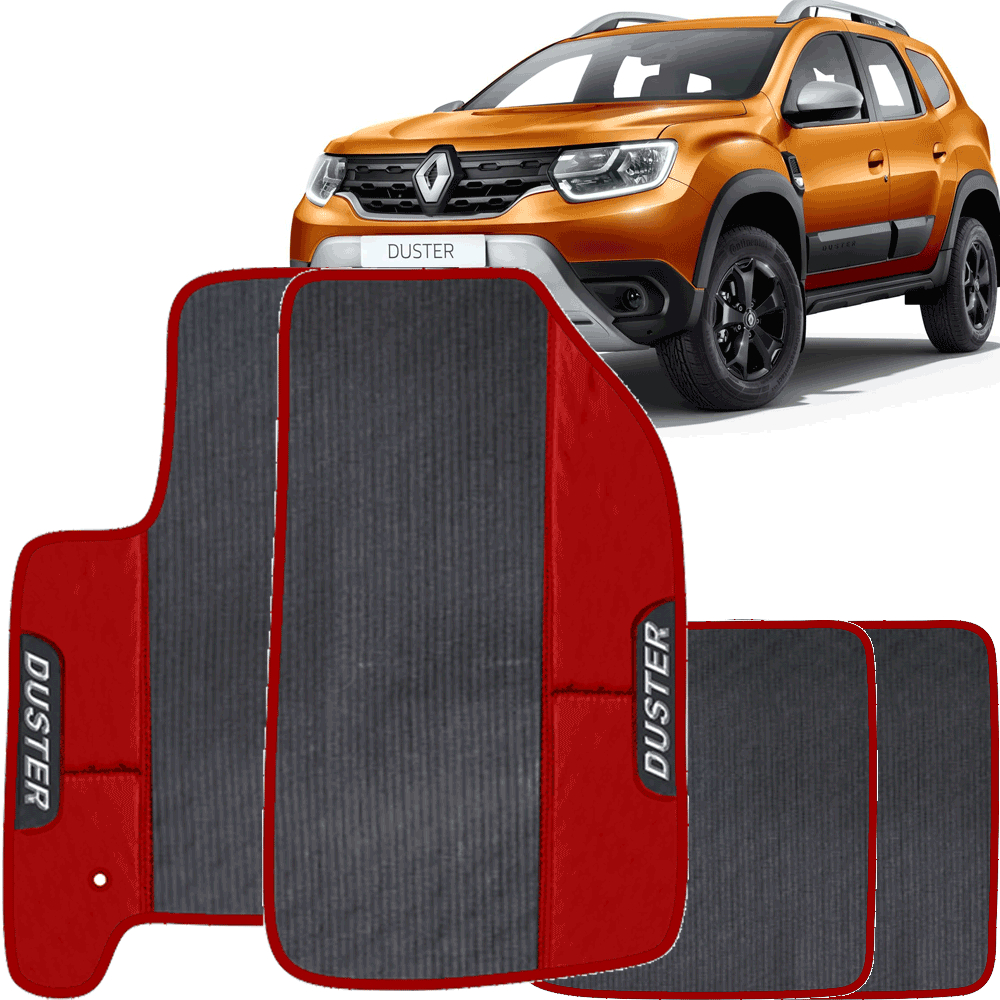 LINDO JOGO TAPETE 4 PEÇAS CARRO AUTOMOTIVO NA COR VERMELHO RENAULT DUSTER 2017 A 2021 TODOS EMBORRACAHDO ECOLOGICO