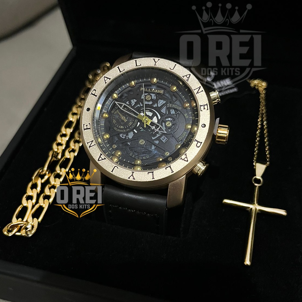 Relógio Masculino a Prova d água De Luxo Moda Original Grife Relogio Dourado Prata Pulseira de Couro