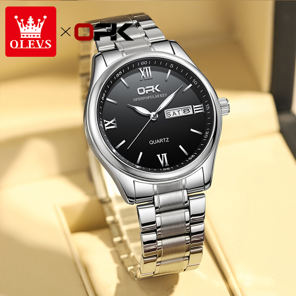 OLEVS Relogio Masculino Original À Prova D'água Negócios Prata Inoxidável Luminoso Duplo Calendário Autêntico 8123