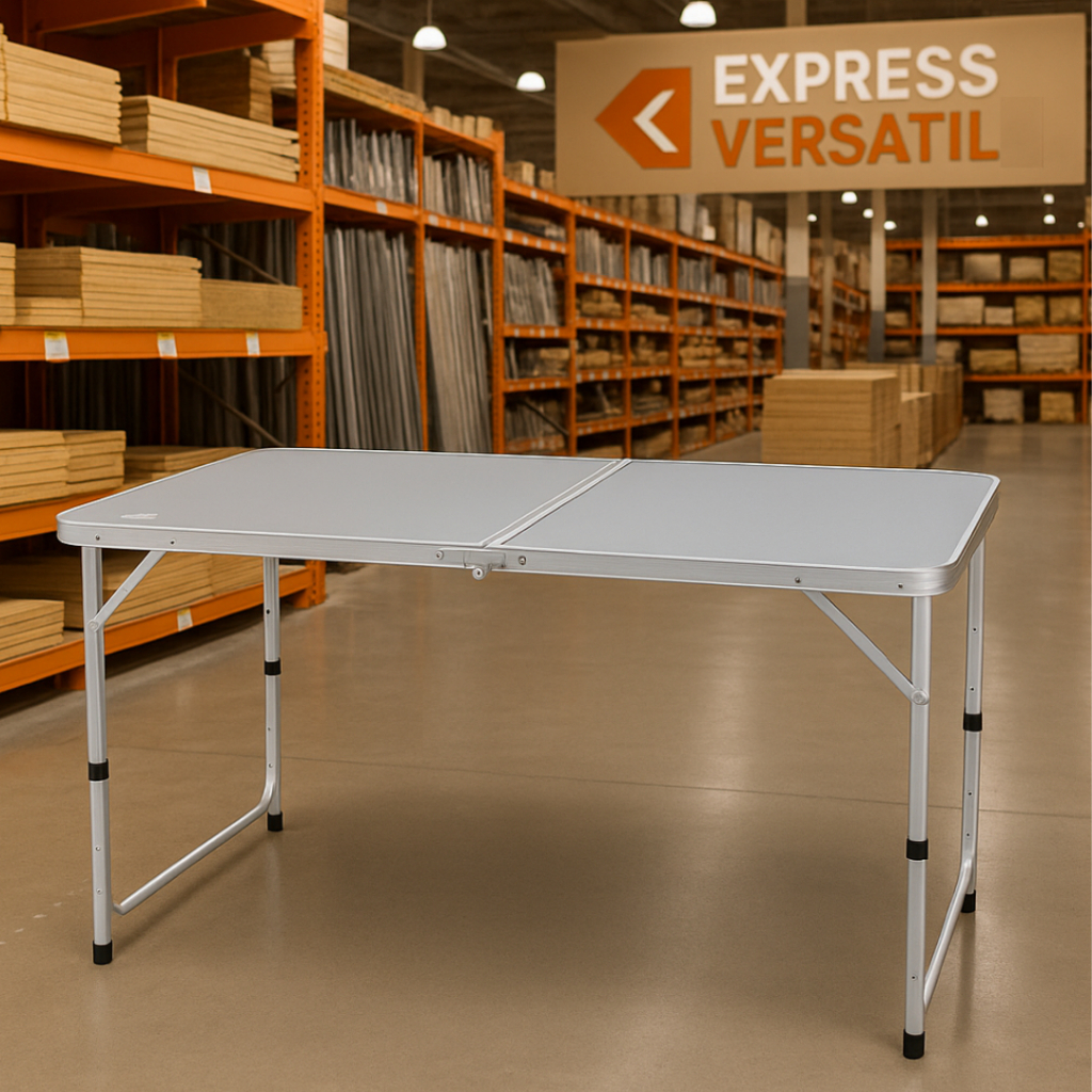 MESA PRÁTICA DUPLA ALUMÍNIO 120 X 60 DOBRÁVEL VIRA MALETA MOR