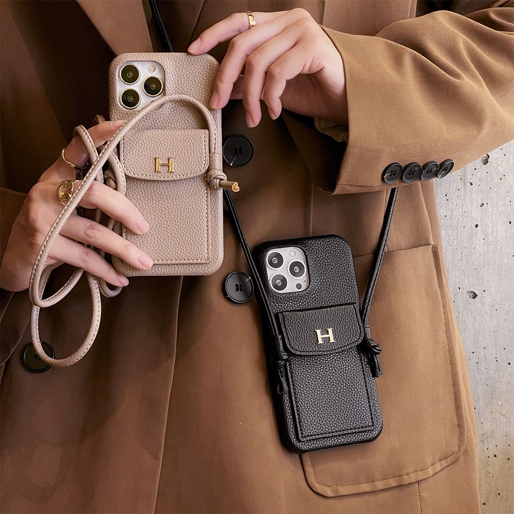 Ins Lichia Padrão Titular Do Cartão Crossbody Carteira Cordão Couro Caso De Telefone Para IPhone 16 14 15 13 12 Pro Max