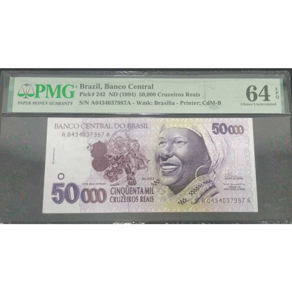 CEDULA DA BAIANA 50000 MIL CRUZEIROS REAIS -FLOR DE ESTAMPA CERTIFICADA PELA PMG