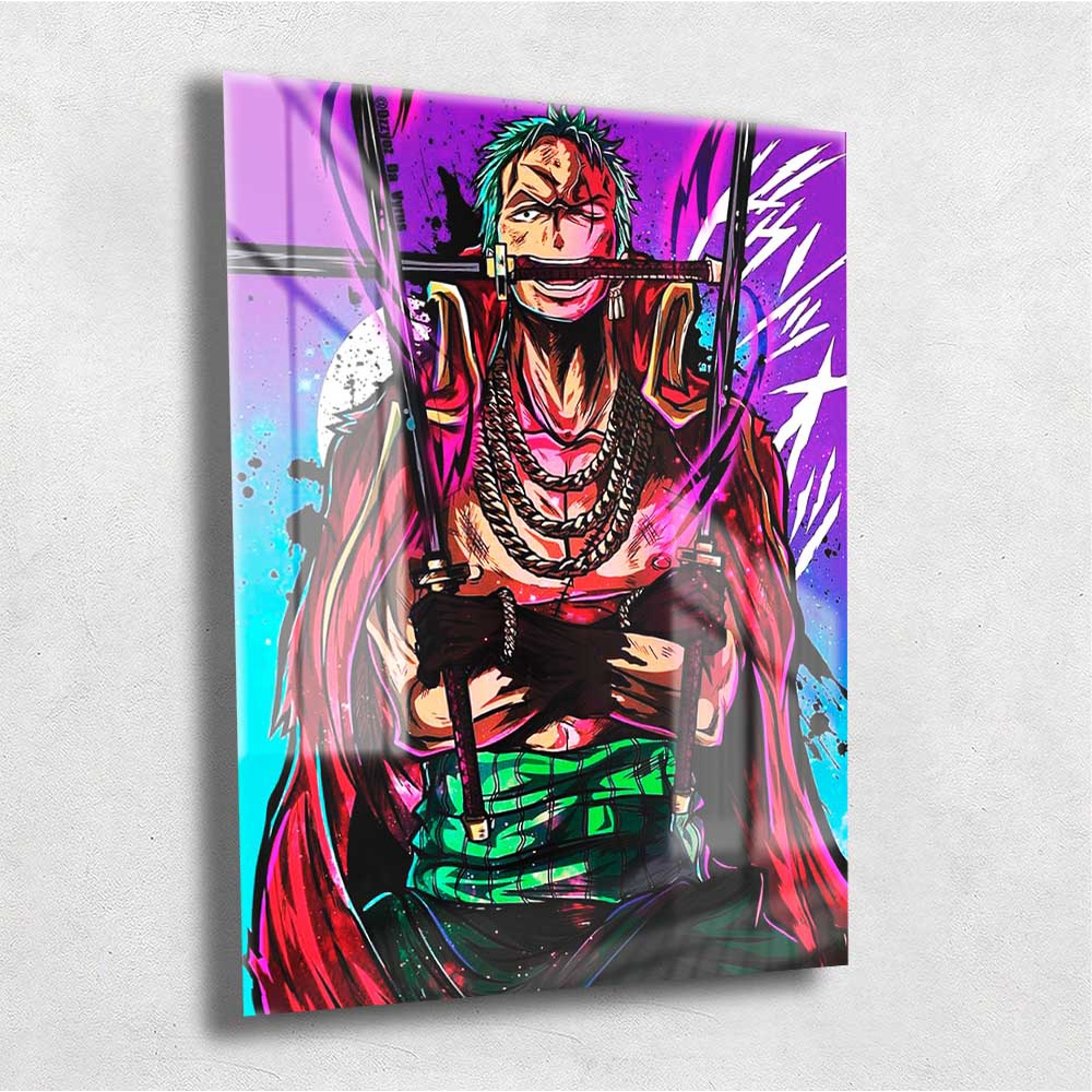 Quadro Metalizado Zoro One Piece Anime Placa Decorativa Brilhante Pôster