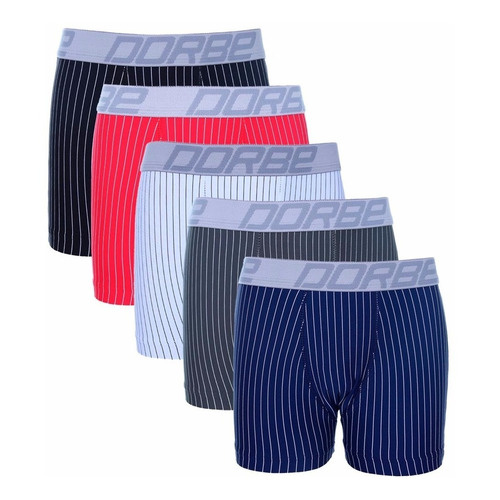 Kit 5 Cuecas Boxer Risca de Giz Microfibra Dorbe Não Enrola Original Box Masculino Adulto Listrada