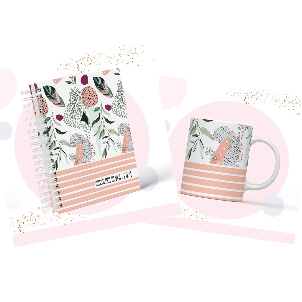 Kit Agenda e Caneca Personalizada Nome - Coleção Floral