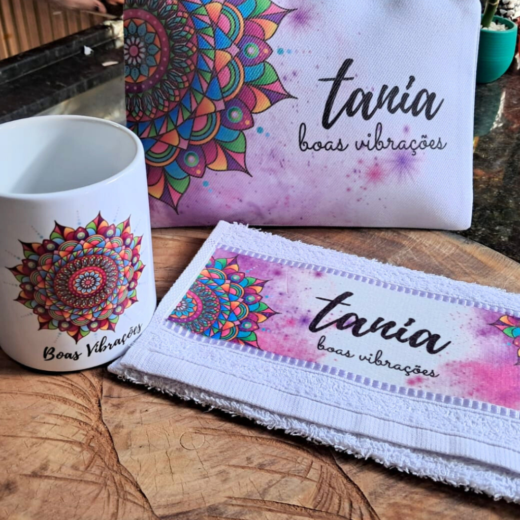 Kit Caneca Toalinha e Necessaire Personalizado com Nome Presente