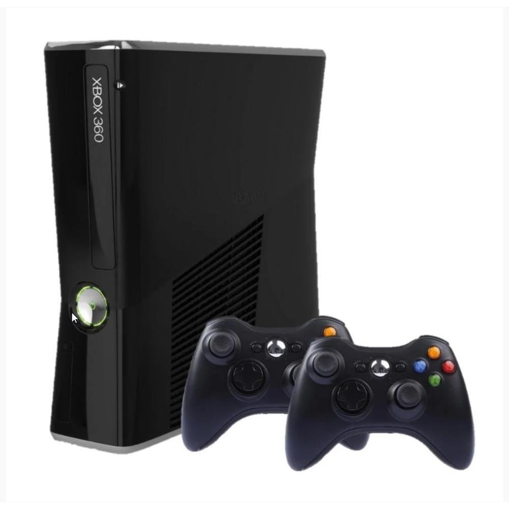 Microsoft XBOX 360 Slim 4gb Standard Cor Matte Black 2 Controles + 5 Jogos
