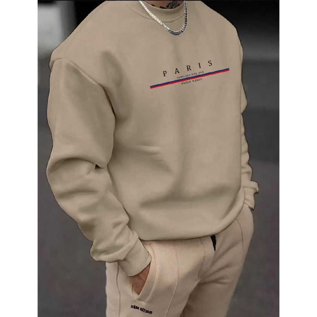 Blusa de Frio Gola Redonda Careca Moletom Feminino Masculino Estampa Paris Flanelado Peluciado