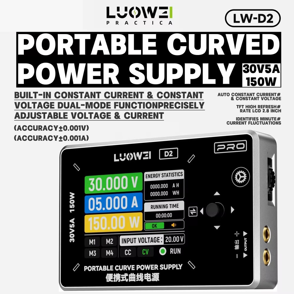 LUOWEI D2 Curva Fonte De Alimentação Digital 50W De Alta Potência Para Reparo De Telefone Ferramenta De Teste De Tensão