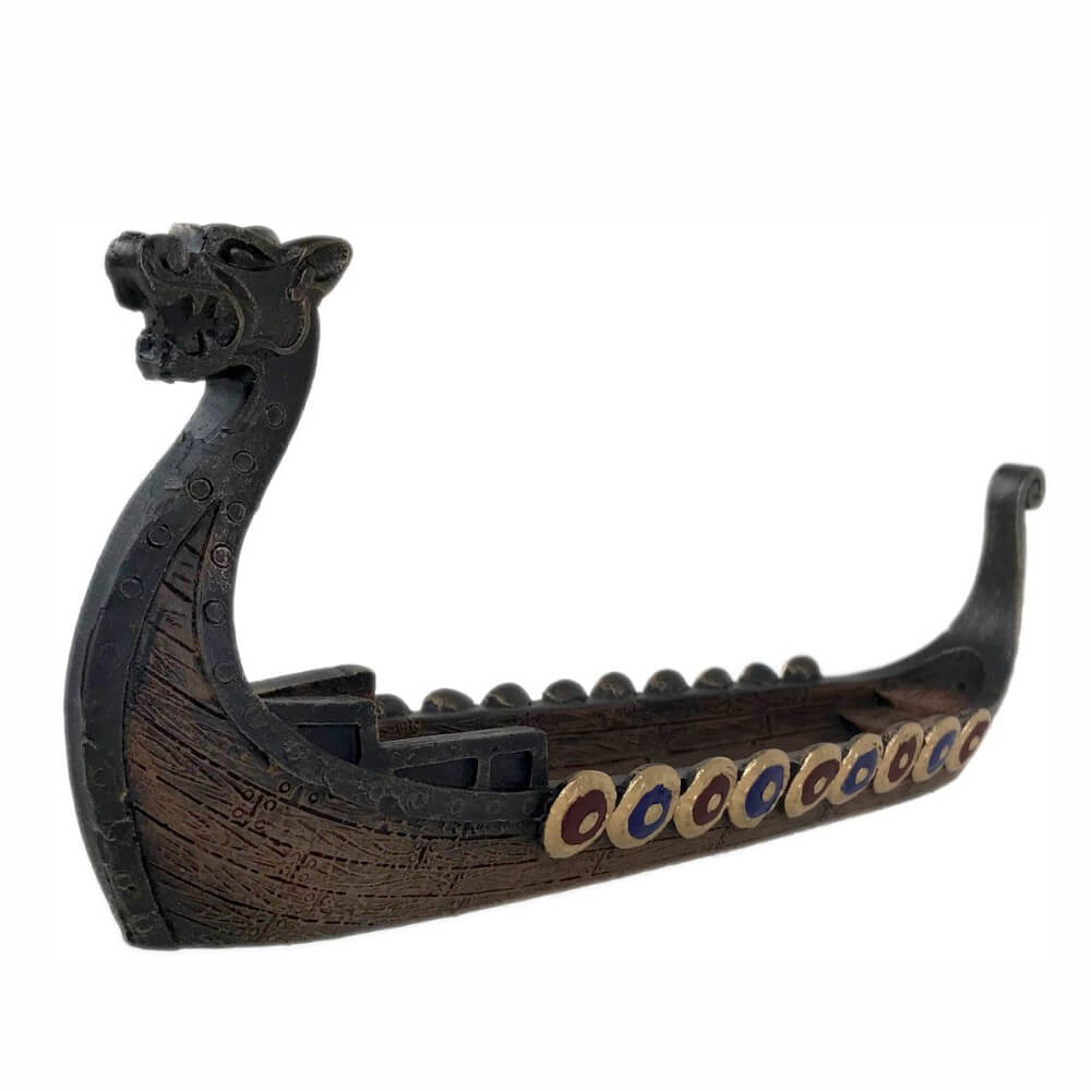 Incensario Porta Incenso Barco Viking Dragão Drakkar Resina Serie Vikings