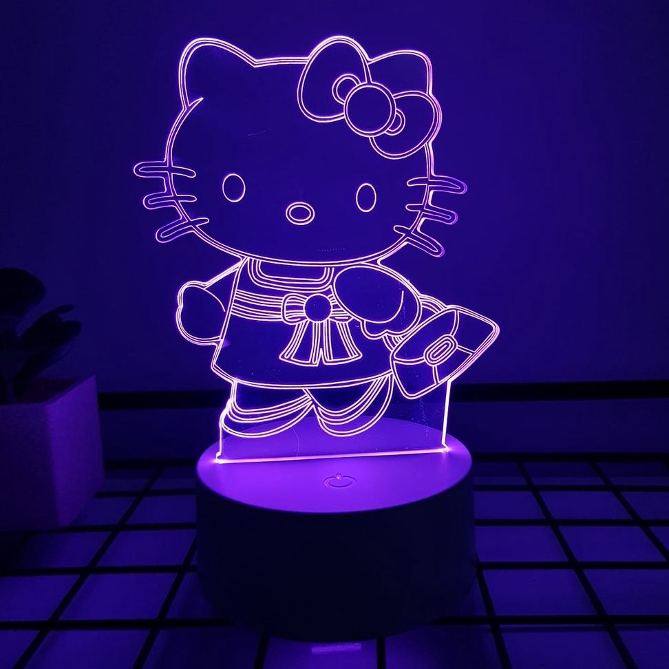 Luminária, abajur de mesa, estilo 3D, Hello Kitty , muda de cor, 7 cores diferentes