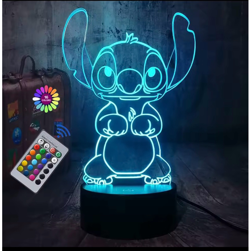 Luminária Lilo Stitch 3D Abajur Ponto de Luz Infantil Quarto Lanterna USB Decoração Touch Presente