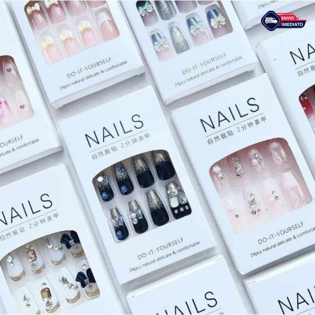 kit 3 caixinha de Unhas Postiças CURTAS Auto Colante - Com 24 Unids NAILS curta