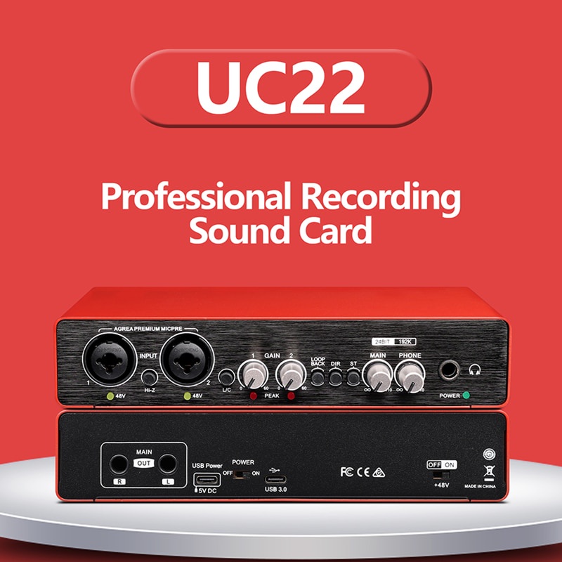 Placa De Som De Gravação De interface De Áudio UC22 48v Fonte De Alimentação Guitarra Elétrica Misturador Fantasma Profissional Sala De Mistura Ao Vivo W8V1 Instrumentos De Suporte De Canto De Telefone Celular