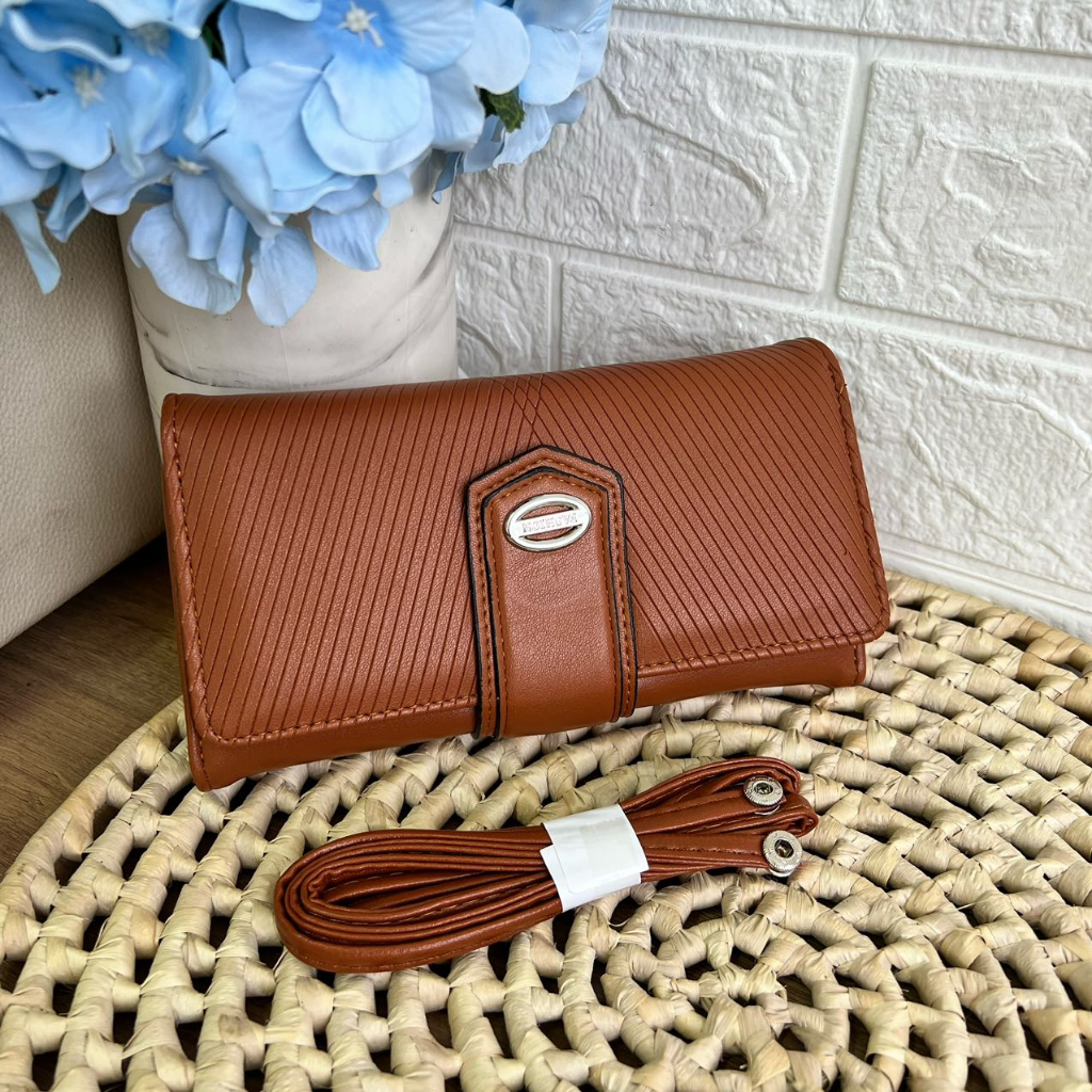 Carteira Longa de Couro PU Feminina, Dupla Camada, Grande Capacidade, Novinho em Folha, Estojo para Celular