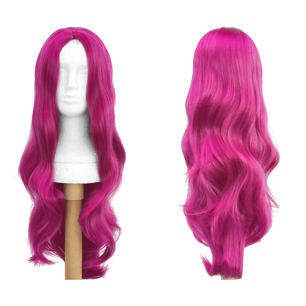 Peruca Sem Franja Rosa Pink Leve Ondulada 75cm Cosplay Wig