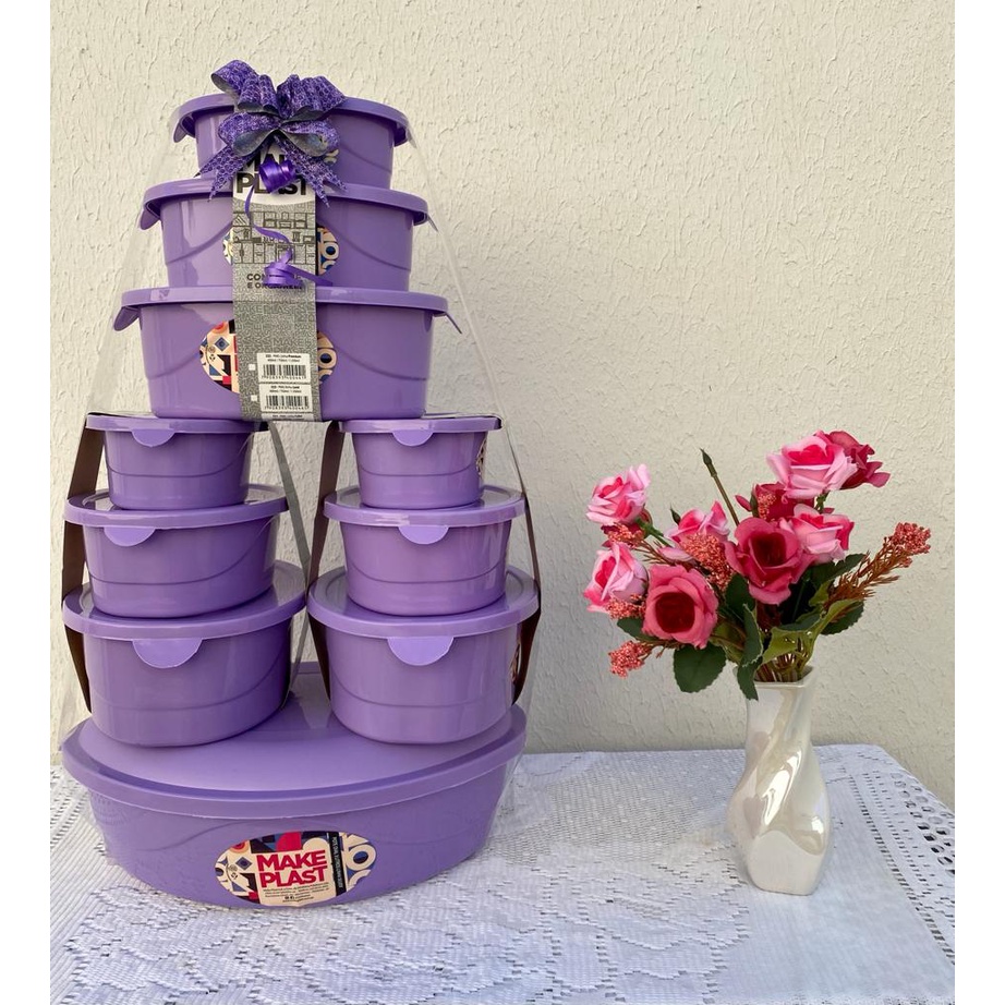 Kit tapoer 10 potes ovais de plástico, pote cozinha, recipiente Livre de BPA,100% Atóxico, armazenador de alimento