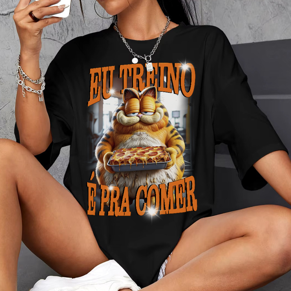 Camiseta Treino 100% Algodão Garfield Treino Pra Comer Academia Lançamento 2025 Envio Imediato