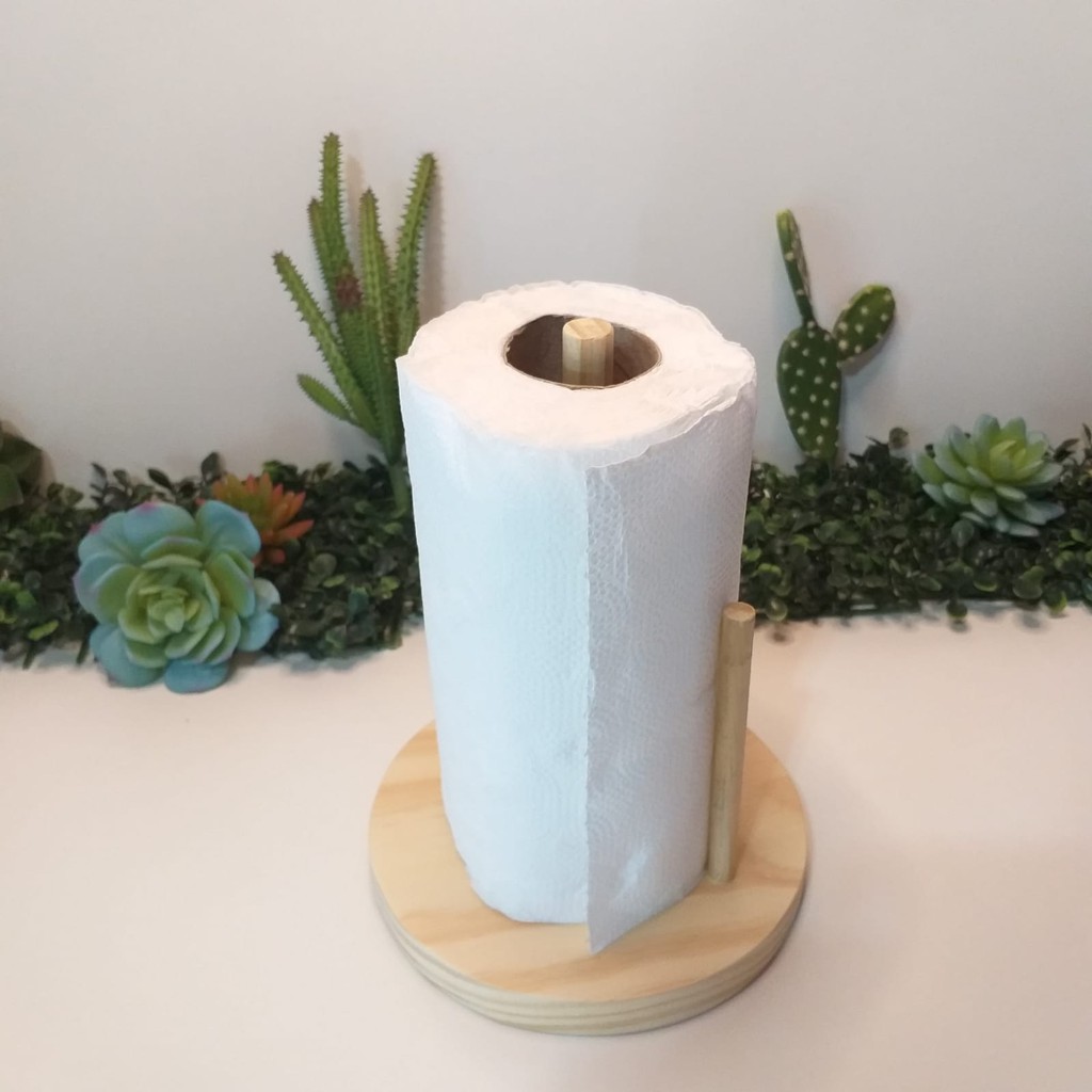 Porta Papel Toalha de Madeira para Cozinha Suporte Rolo Organizador de Mesa