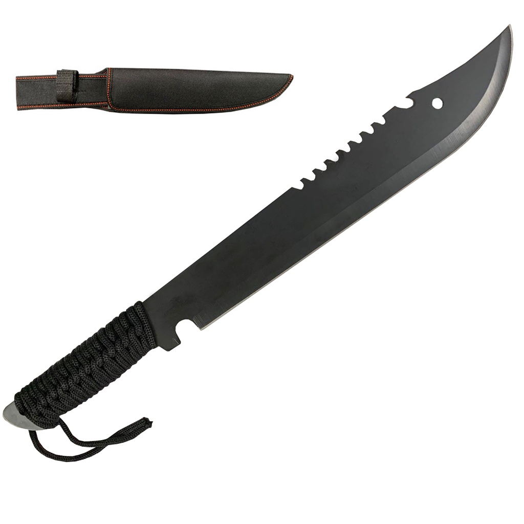 Facão Esportiva Selva Mato Preta Corte Reforçado Cana Pesca Full Tang Rambo ABS Inox Com Bainha Presente Pai Amigo