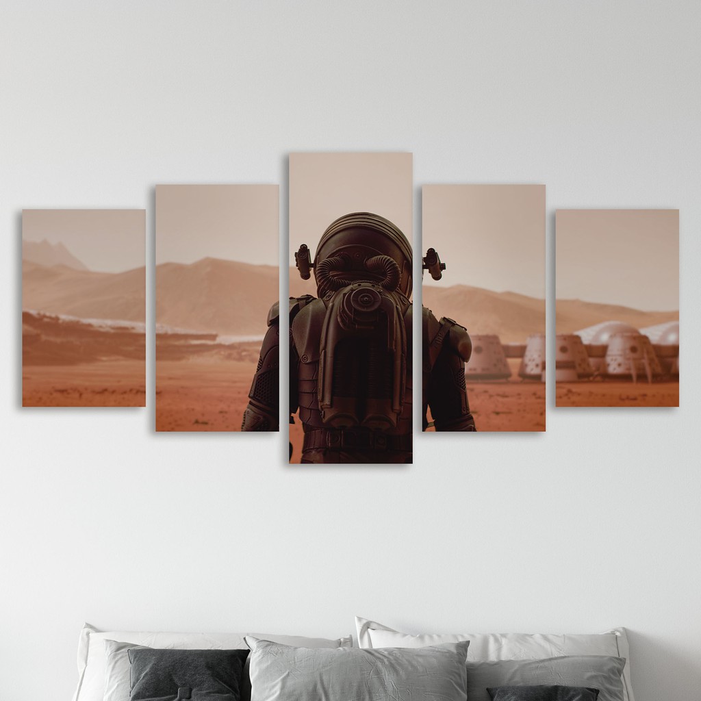 Kit 5 Quadros Mosaico Decorativos Planeta Marte Astronauta