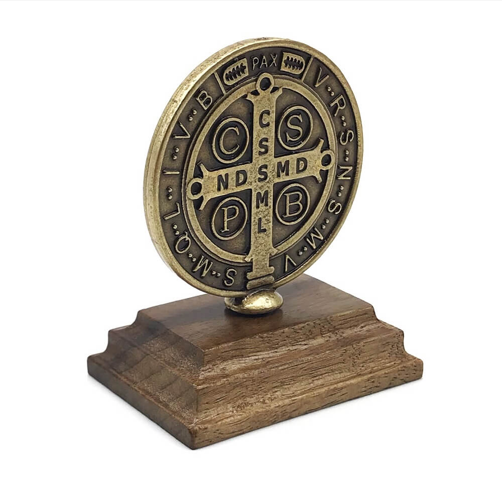 Adorno De Mesa Medalha De São Bento No Pedestal