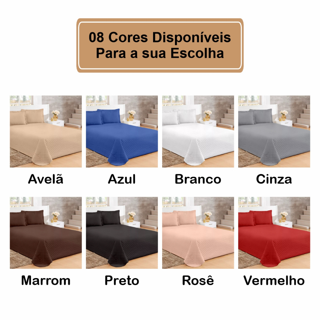 Kit Colcha Cobre Leito Casal, Queen ou Solteiro com Porta Travesseiro em Debrum