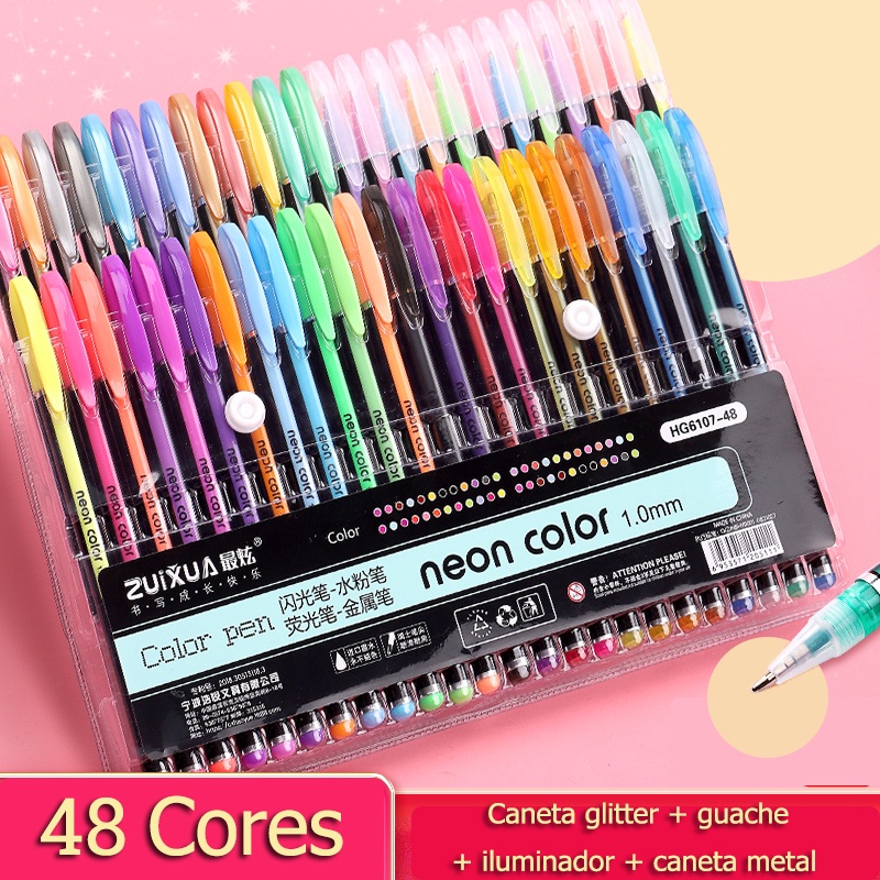 12/24/36/48 Cores Glitter Esboço Desenho Cor Marcadores Caneta Gel Set Recarga Neon Pastel Marcador Material Escolar Papelaria